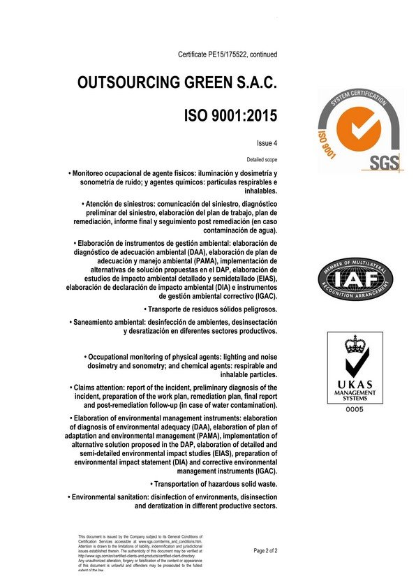 Nuestros servicios cumplen con los más altos estándares de calidad, avalada por las certificaciones internacionales ISO 9001:2015, ISO 14001:2015 y ISO 45001:2018.